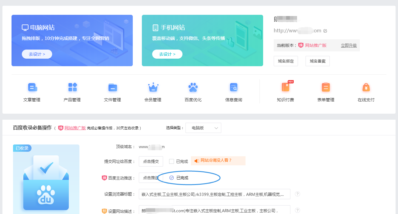 【注意】系统赠送的免费二级域名是不支持做百度主动推送验证的,因为免费的二级域名不支持html文件访问。需要另外绑定优质域名或者是优质域名生成的二级域名才可以