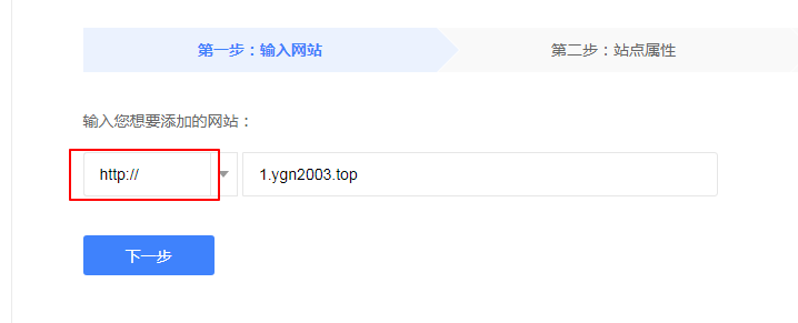 2.3. 验证网站时靠前步选择的协议头(http/https),会在第三步体现出来。如果选择的是https协议头,那么第三步会显示https的。