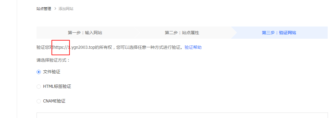 2.3 验证网站时靠前步选择的协议头(http/https),会在第三步体现出来。如果选择的是https协议头,那么第三步会显示https的(图1)。选择的是http协议头,那么第三步就不会显示https(图2图3)。可以使用这个方法判断靠前步选择的是http还是https。、